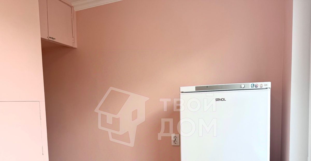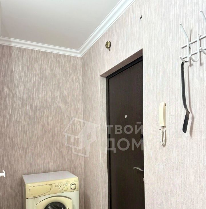 Квартира укомплектована мебелью и техникой, включая холодильник, стиральную машину, шкаф, комод.