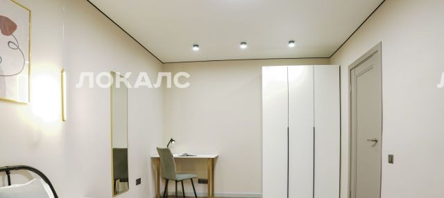 В спальне двуспальная кровать с ортопедическим основанием, тв тумба, прикроватные тумбы, рабочий стол и удобный стул, вместительный шкаф.. зеркало в полный рост, есть розетка для навесного смарт ТВ.