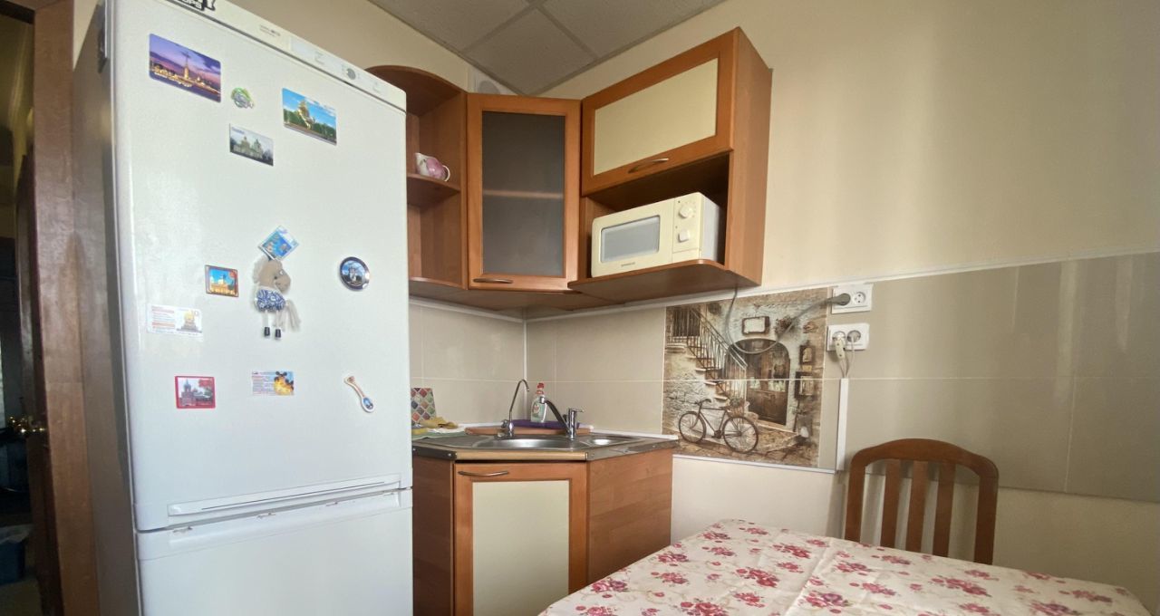 Внутри — просторная комната (20,2 м²), кухня (7,8 м²) с балконом (3 м²), раздельный санузел и кладовка. Свежий ремонт и всё необходимое для жизни: