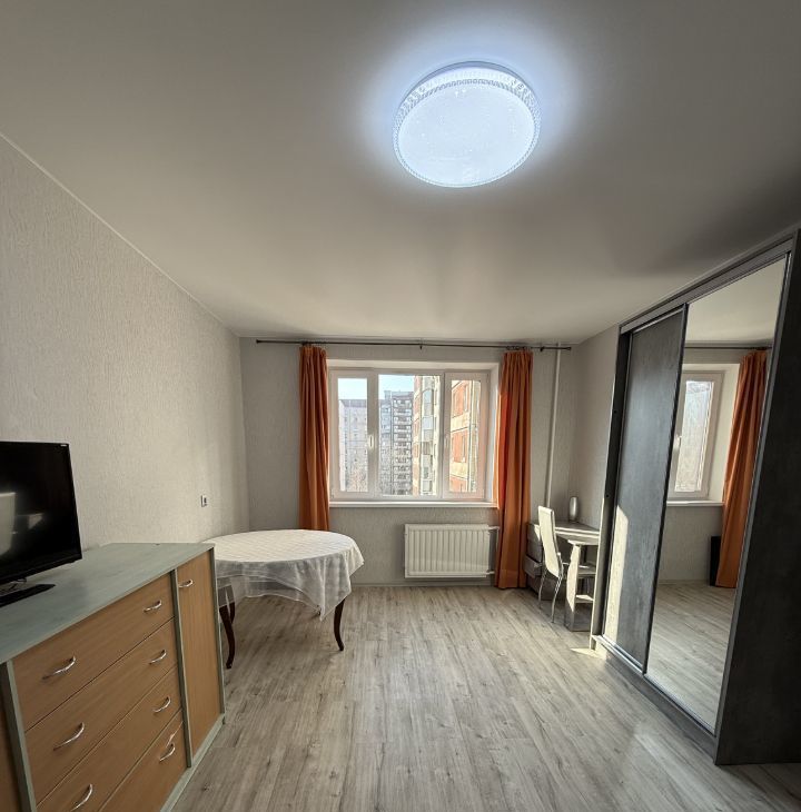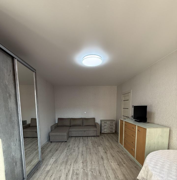 Квартира с новым косметическим ремонтом полностью готова к проживанию. В комнате и на кухне есть необходимая мебель и техника, для сна угловой диван-кровать. Окна квартиры выходят во двор без машин, поэтому в ней всегда тихо и спокойно.
