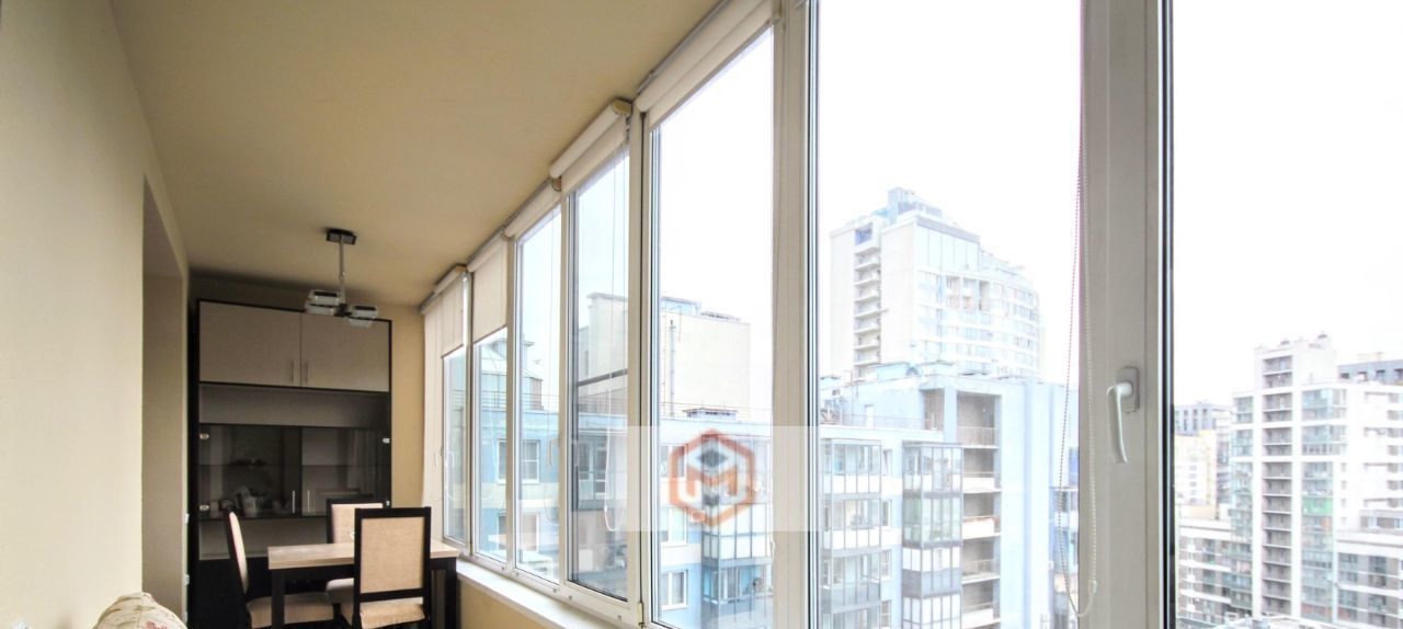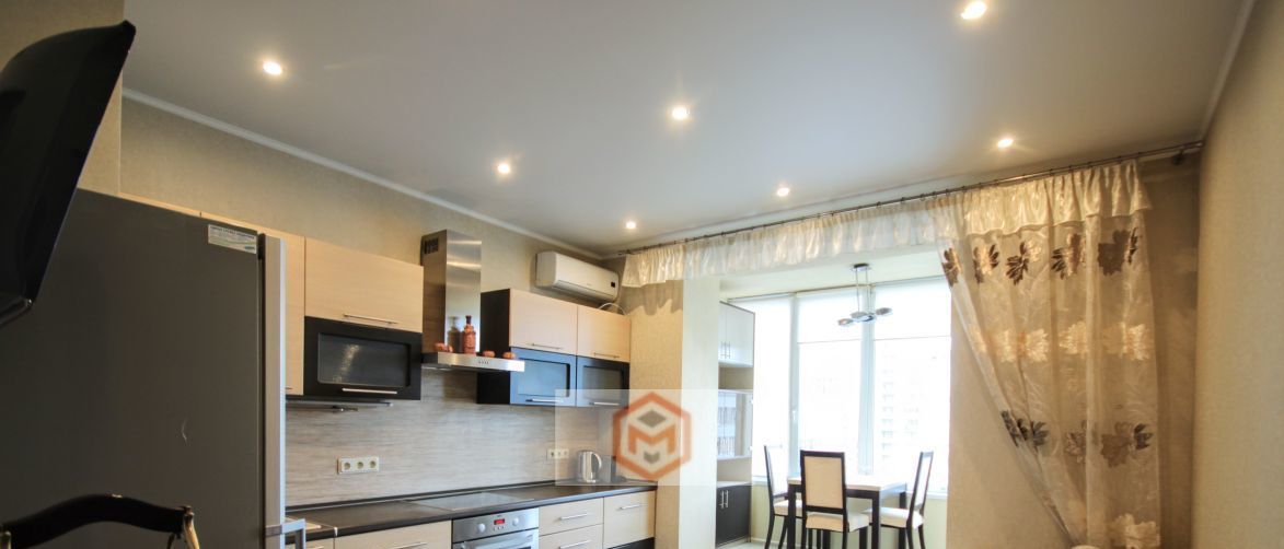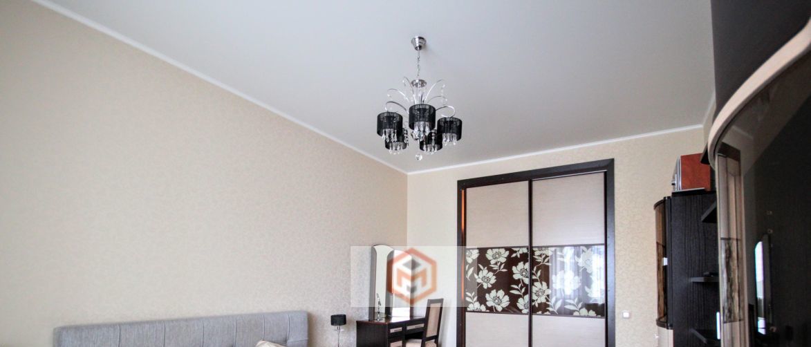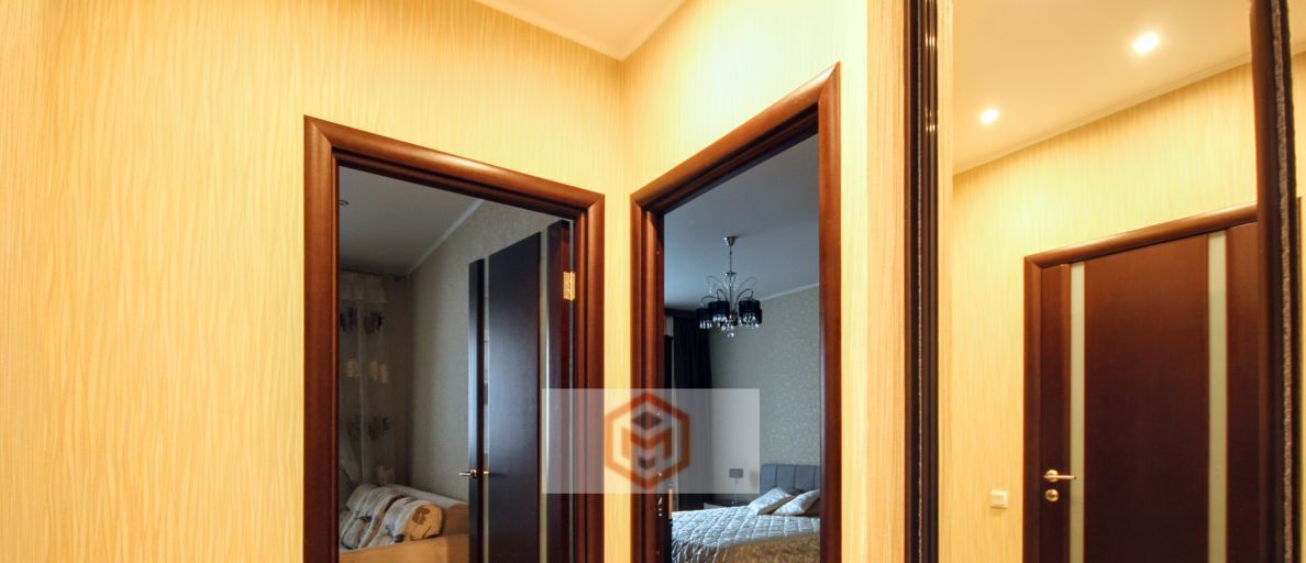 Изолированная спальня с гардеробной, просторная кухня с выходом на утепленный балкон, совмещенный санузел с гидромассажной ванной и прихожая.