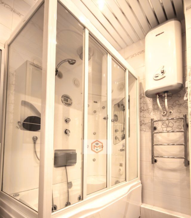 Есть вся необходимая бытовая техника, теплые полы в прихожей и в ванне. Установлены кондиционер и электрический бойлер.