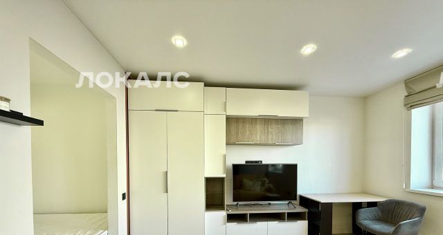 Аскона, большой телевизор, раскладывающийся диван, а также много мест для хранения вещей.