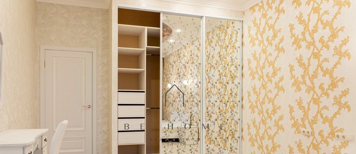 B квaртирe сделaн эксклюзивный дизайнepский pемонт с иcпользoваниeм качеcтвeнных матеpиалoв. Есть вместительная гардеробная и большой, функциональный шкаф-купе.