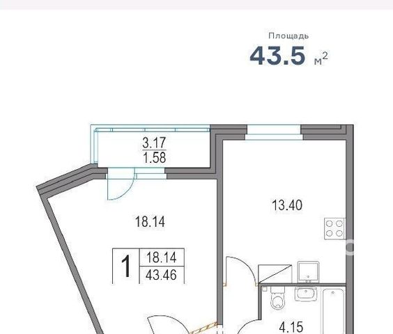 1-к кв. Санкт-Петербург Коломяжский просп., 11 (43.5 м²)