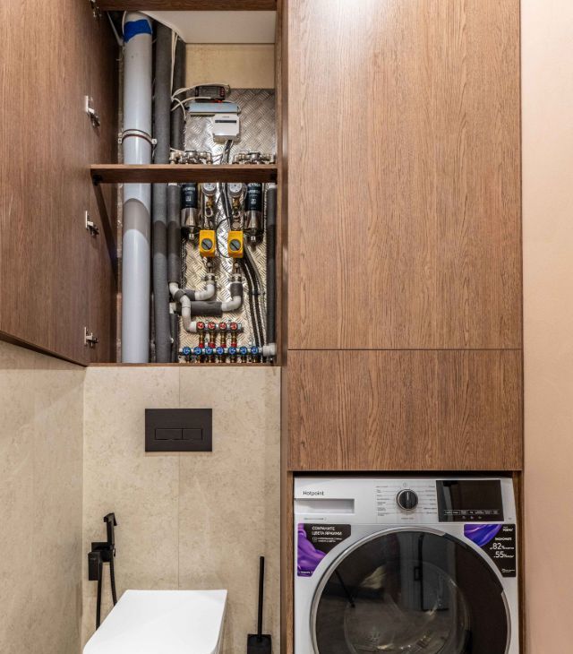Разводка по сантехнике в квартире выполненно профессионально, качественно, надежно . Материалы использовались от итальянских, немецких компаний. Имеется фильтры тонкой очистки воды из нержавейки. Питьевой фильтр на кухне. Система протечки. Теплый пол в ванной и в прихожей. Интернет.