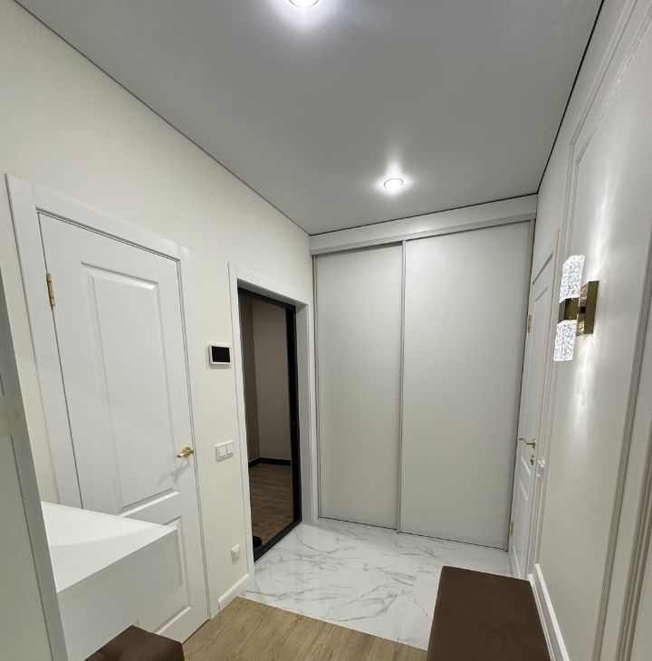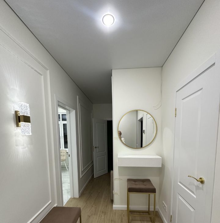 В квартире выполнен Дизайнерский ремонт- февраль 2025 г., использованы качественные отделочные материалы и техника, теплые полы в ванной, на кухне, холле (глянцевый керамогранит с эффектом антискольжение), на балконе такая же плитка 90*120.