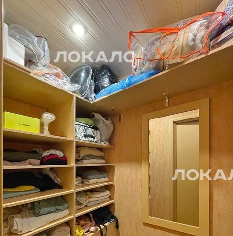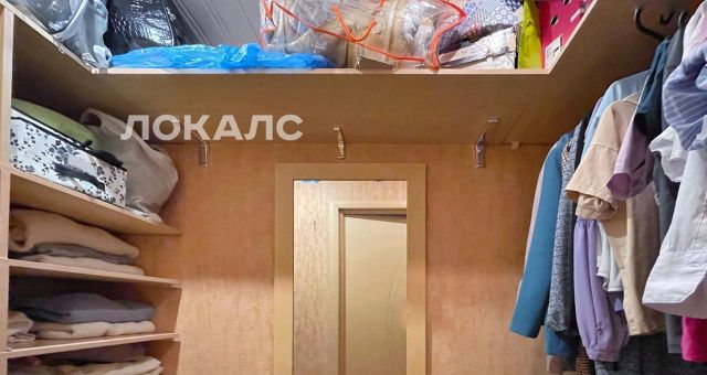 Обратите внимание, квартира не заставлена большими шкафами, вся площадь свободна и может использоваться по назначению, а всё благодаря вместительной гардеробной (2.7 м²), расположенной справа от входной двери. Все вещи хранятся именно там, аккуратно разложенные по полкам.