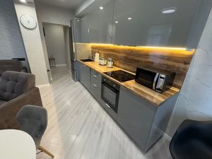 Кухня оборудована всем необходимым для проживания. Комната с полноценной двуспальной кроватью 160*200. Шкаф для хранения одежды.