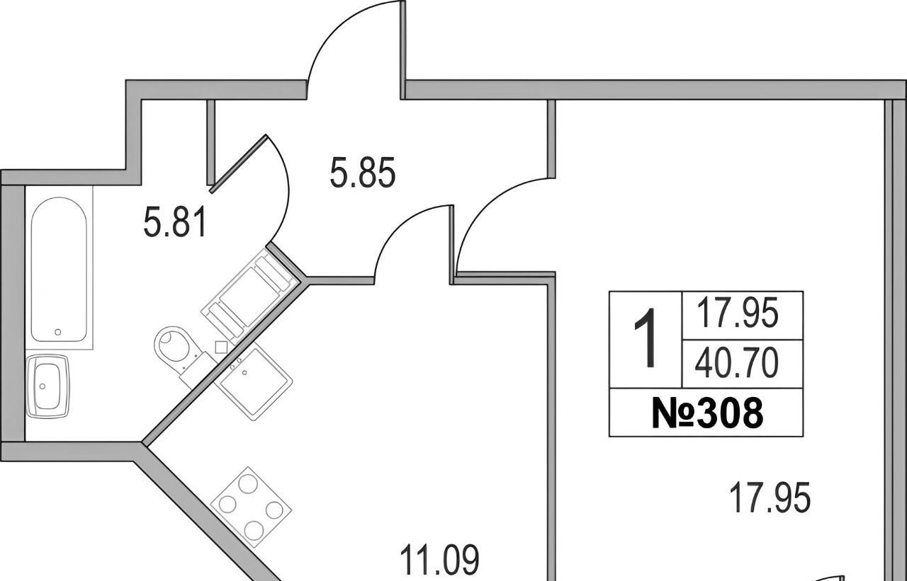 1-к кв. Санкт-Петербург Коломяжский просп., 5к3 (42.0 м²)