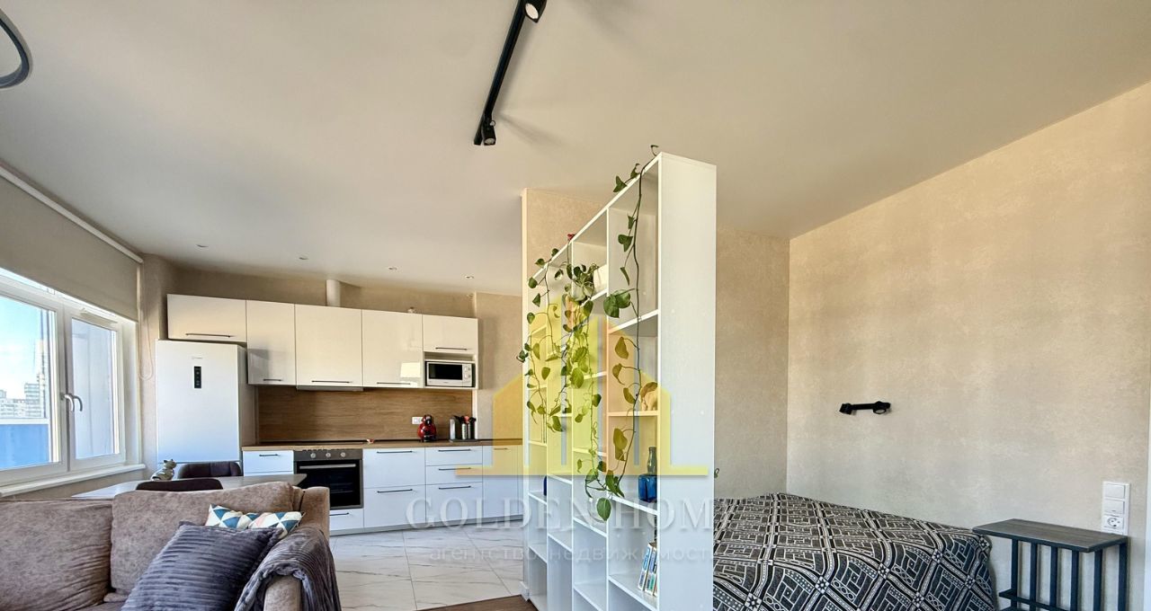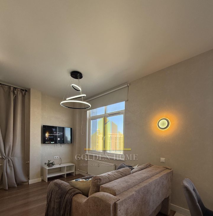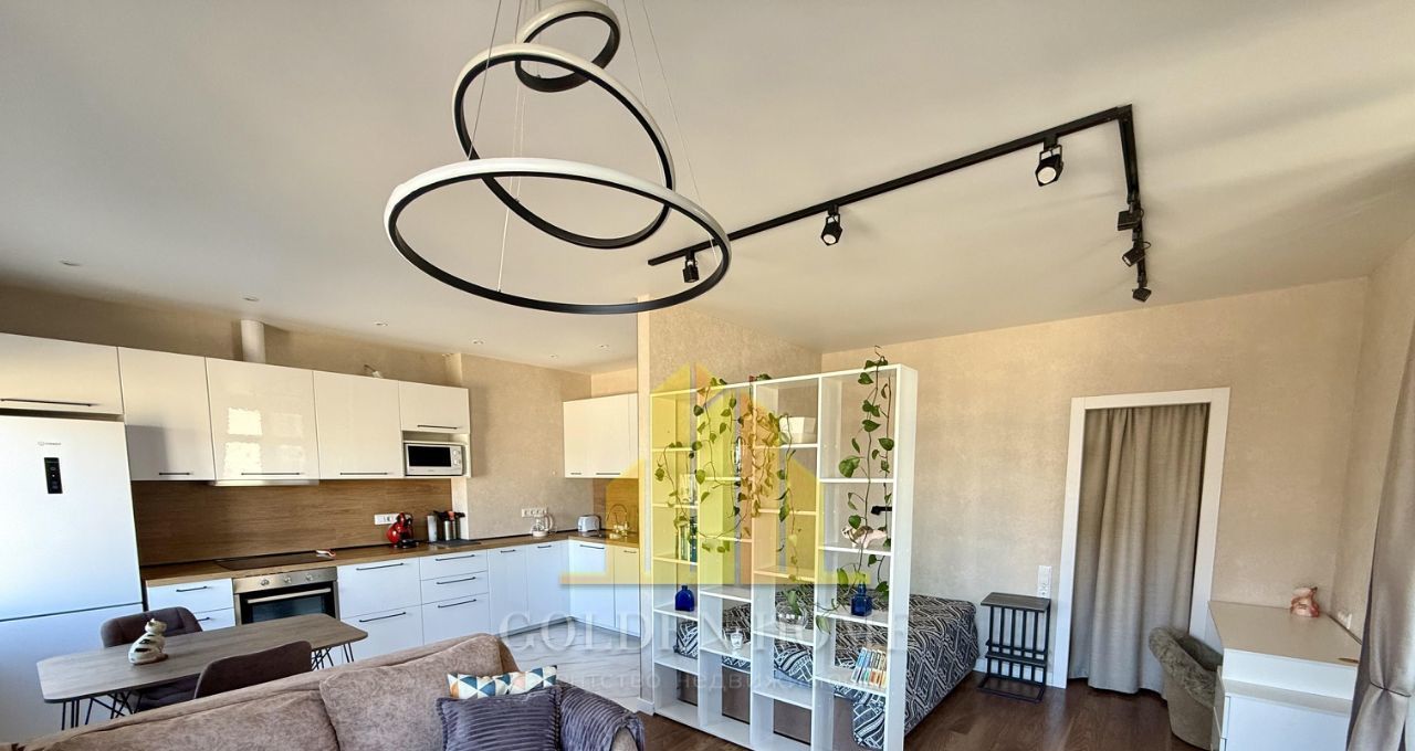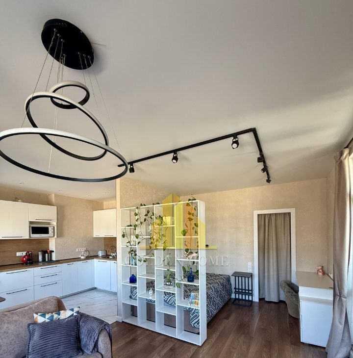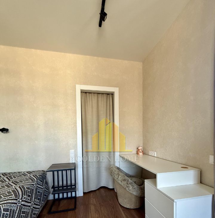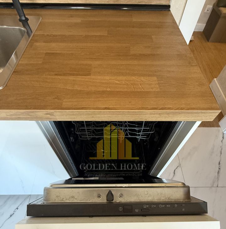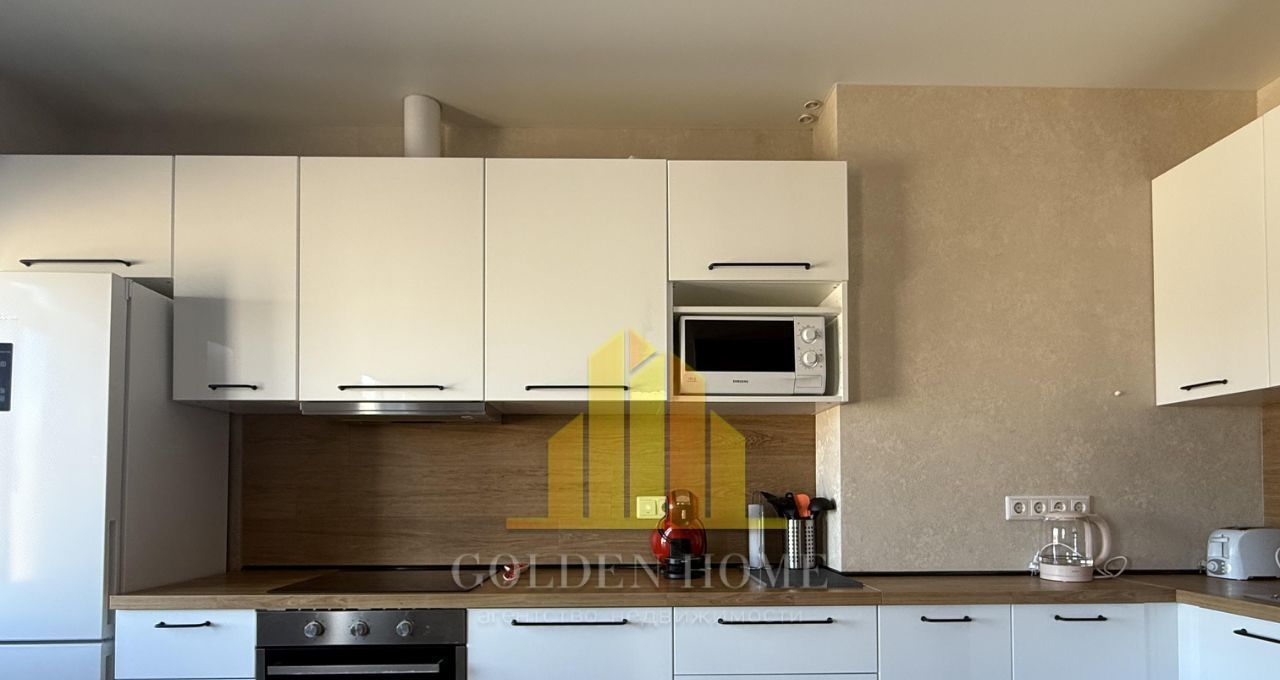 Холодильник с зоной фреш, телевизор, посудомоечная машина на 45, стиральная машина, микроволновка, индукционная плита, чайник, пылесос, утюг. Кровать на 160. Раскладывающийся удобный диван.