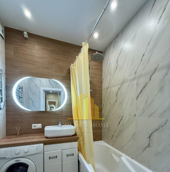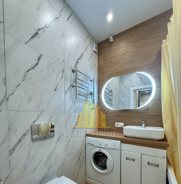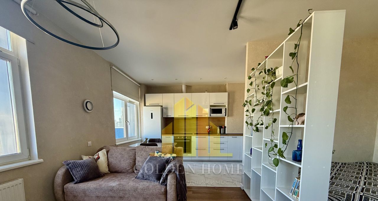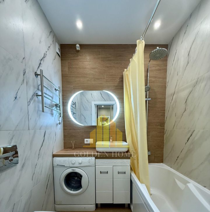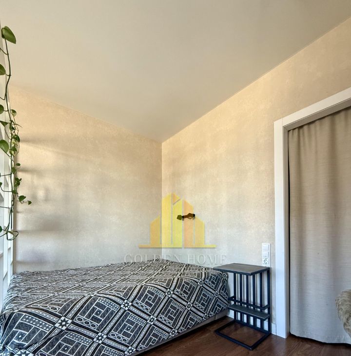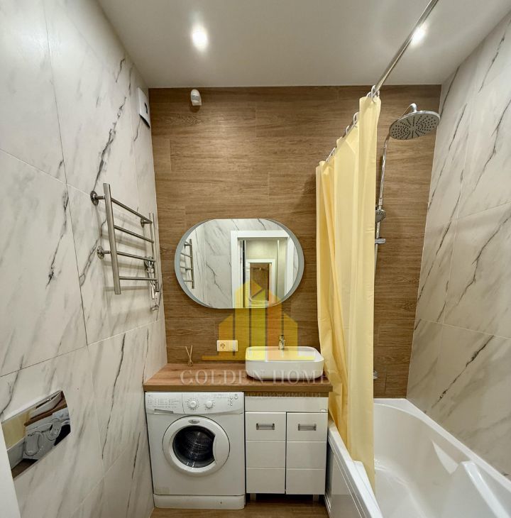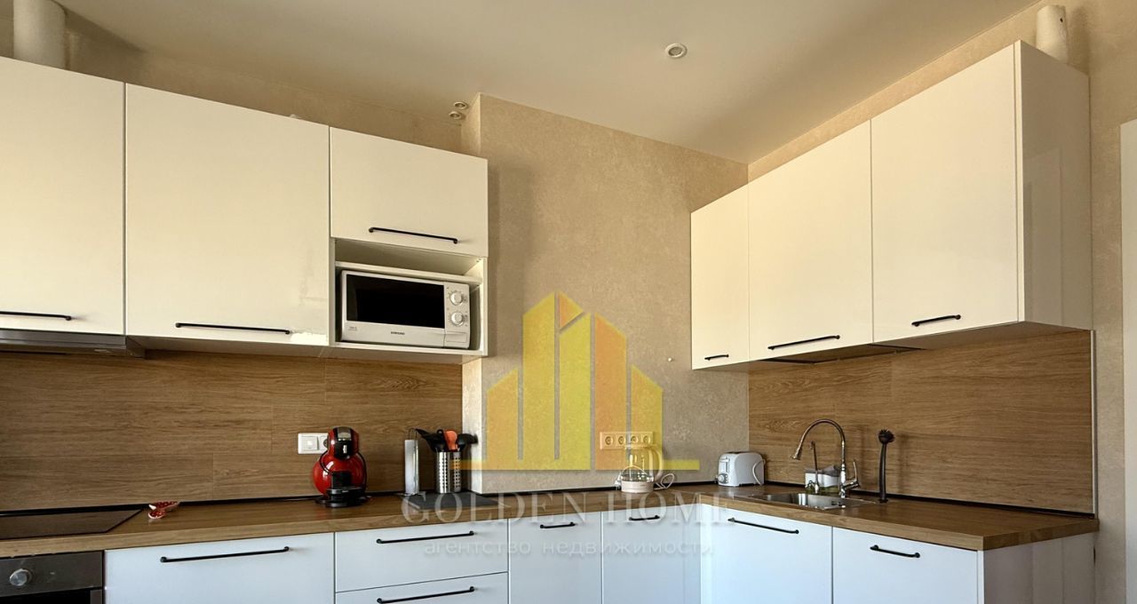 Холодильник с зоной фреш, телевизор, посудомоечная машина на 45, стиральная машина, микроволновка, индукционная плита, чайник, пылесос, утюг. Кровать на 160. Раскладывающийся удобный диван.
