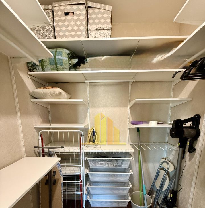 В квартире много мест для хранения. Большая гардеробная. Шкаф-купе при входе.