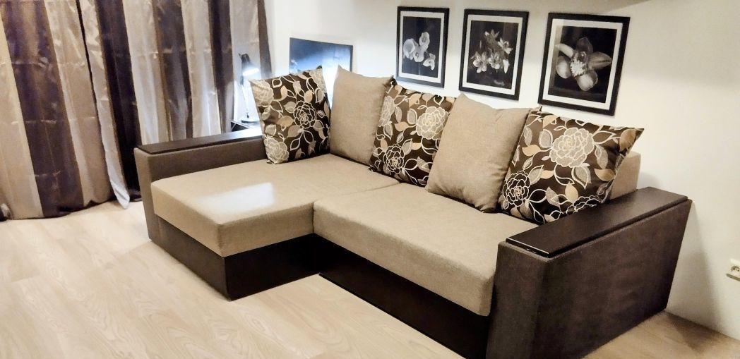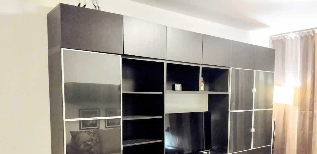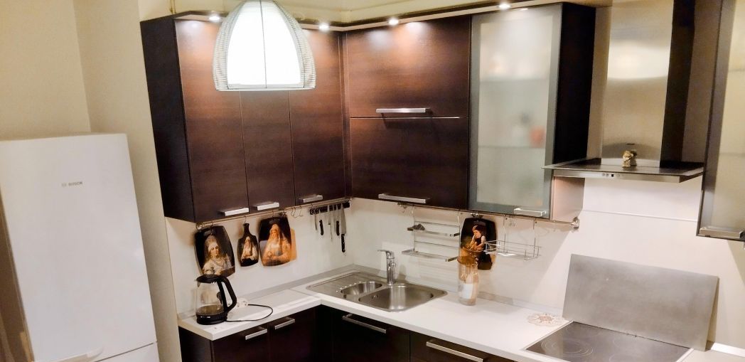 Вся мебель и техника качественные, новые или почти новые. 2 телевизора, стиральная машина LG, холодильник Bosch. Есть посуда , чашки, приборы, сковородки, кастрюли. Моющий пылесос, а также есть пылесос для сухой уборки. Вытяжной шкаф, варочная керамическая поверхность и духовка Electrolux.