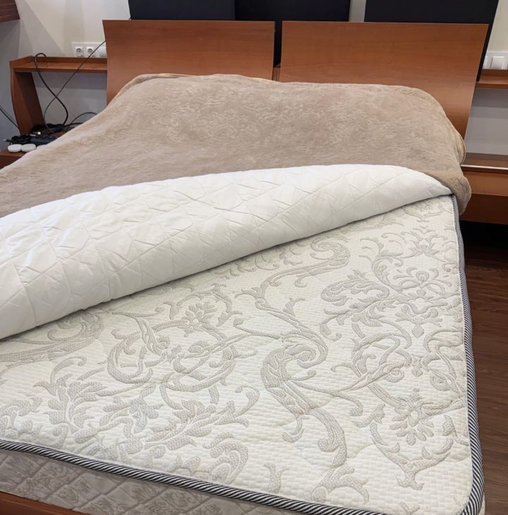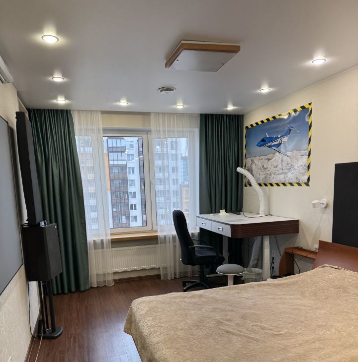 В комнате-двуспальная кровать (Италия) с удобным ортопедическим матрасом, большой письменный стол с электрической регулировкой высоты и выдвижными ящиками, вместительный шкаф-купе.