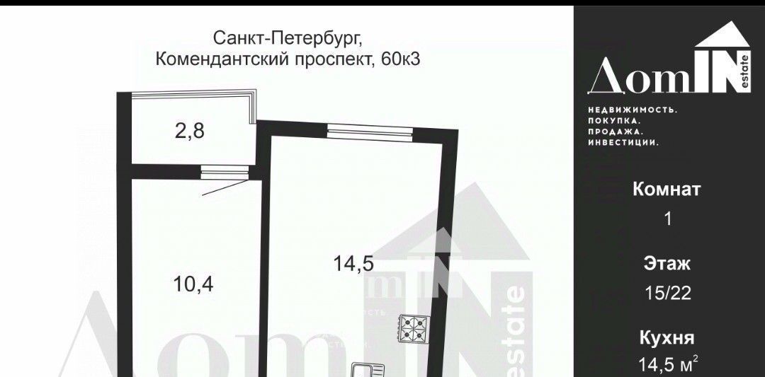 1-к кв. Санкт-Петербург Комендантский просп., 60к3 (33.3 м²)