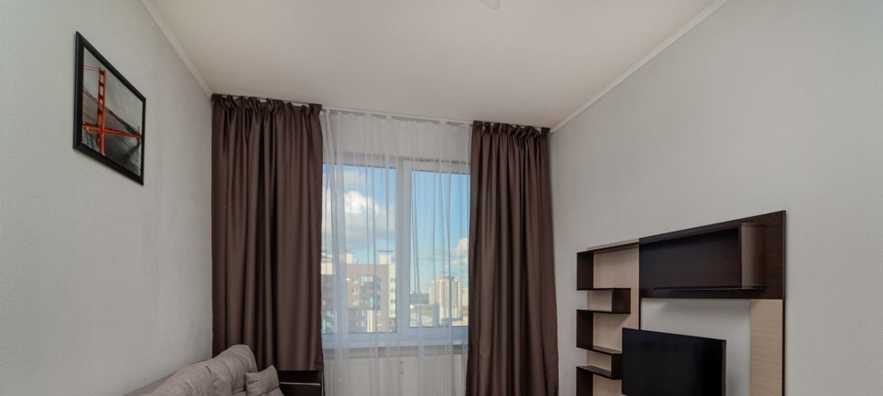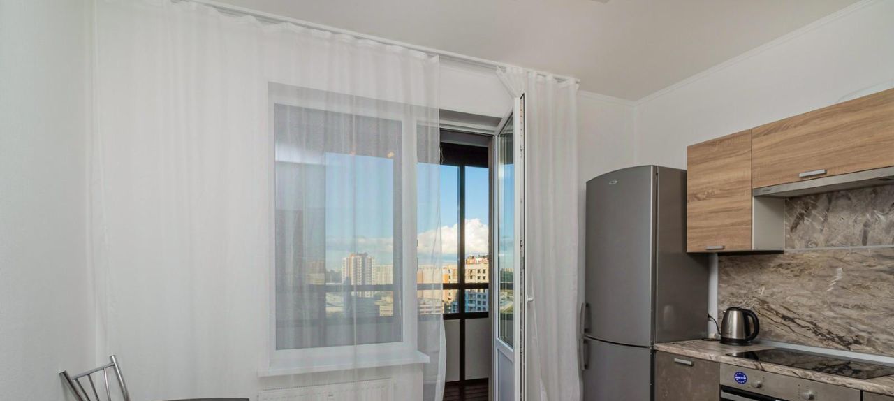 Предлагается к долгосрочной аренде однокомнатная видовая полностью меблированная квартира в новом жилом комплексе "Чистое небо", Комендантский проспект, д. 62, стр. 1.