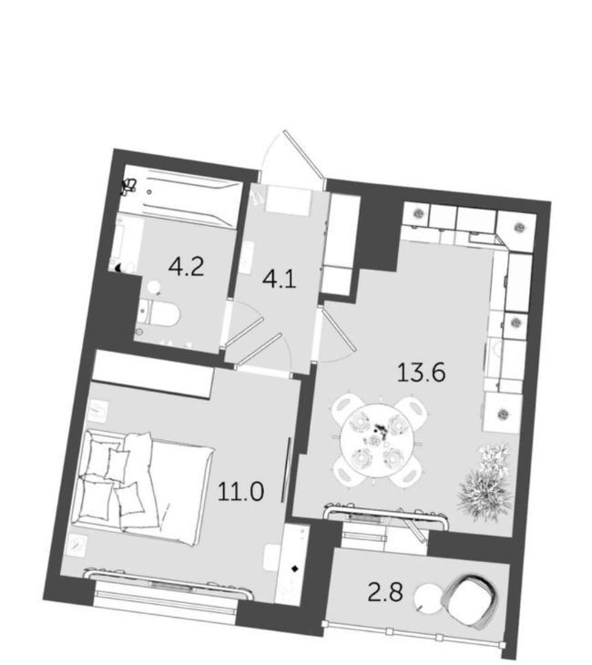 1-комнатная квартира: Санкт-Петербург, проспект Авиаконструкторов, 54 (35.6 м²)