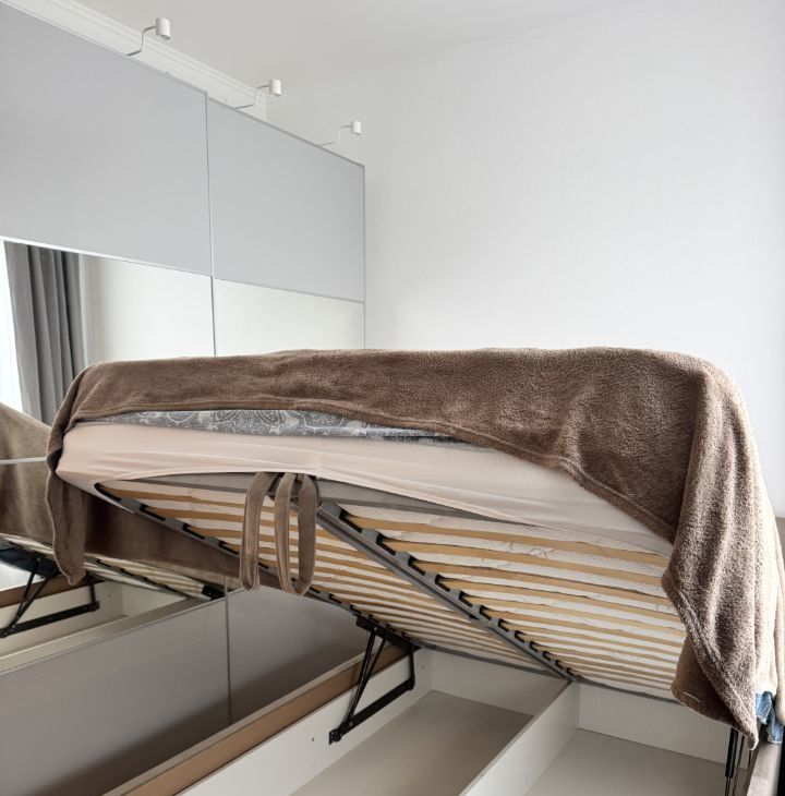 Кровать 1,40м с подъемным механизмом и отличным ортопедическим матрасом;