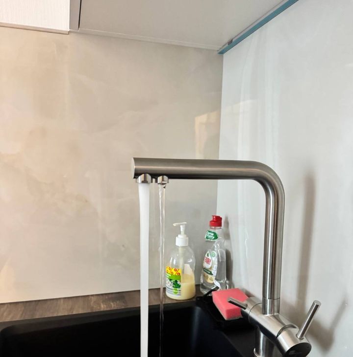 Кран с фильтром, можно сразу пить питьевую воду.