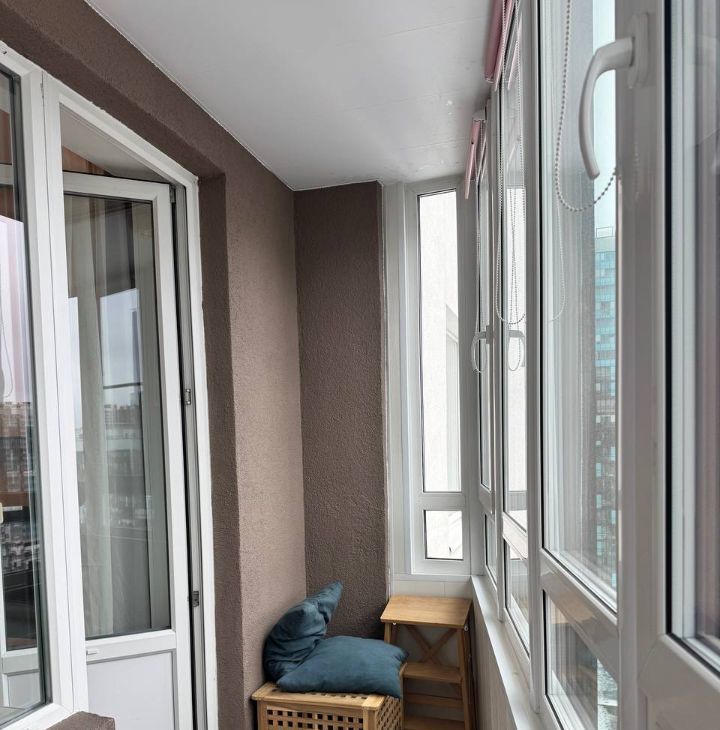 Балкон утеплен, отличное место для отдыха или организовать рабочее пространство.