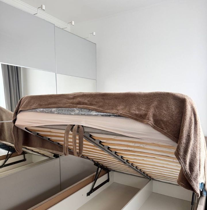Кровать с подъемным механизмом и отличным ортопедическим матрасом;