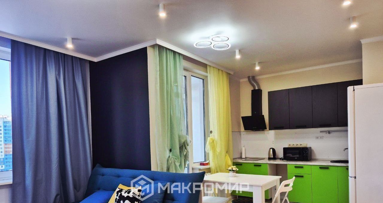 Просторная кухня-гостиная 23 м², с выходом на лоджию с панорамным остеклением;