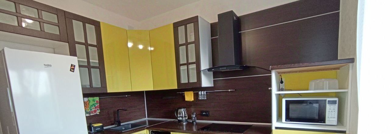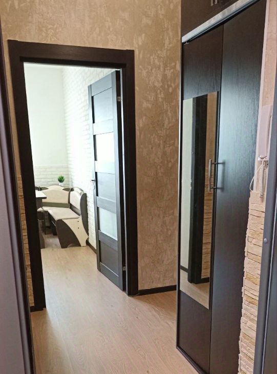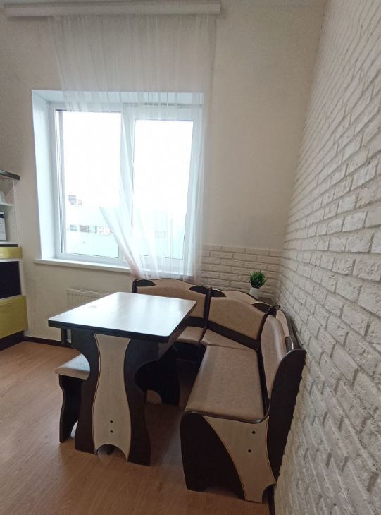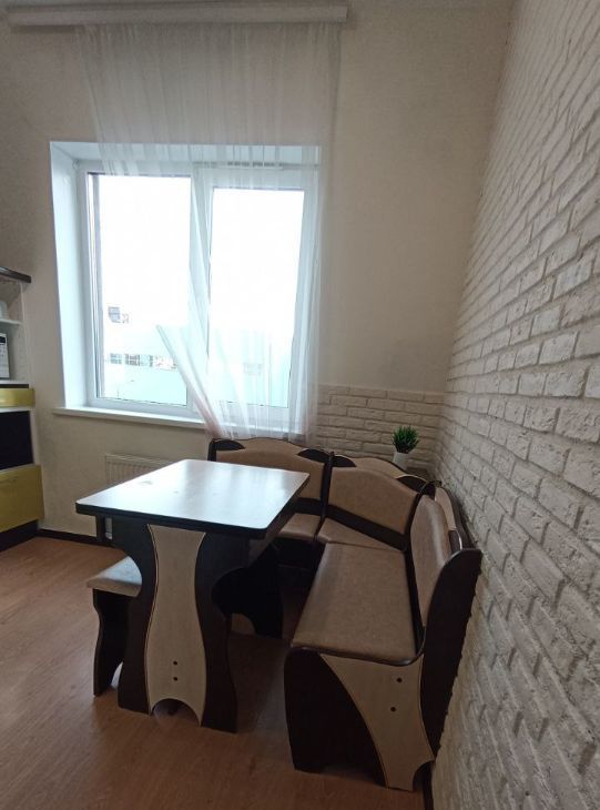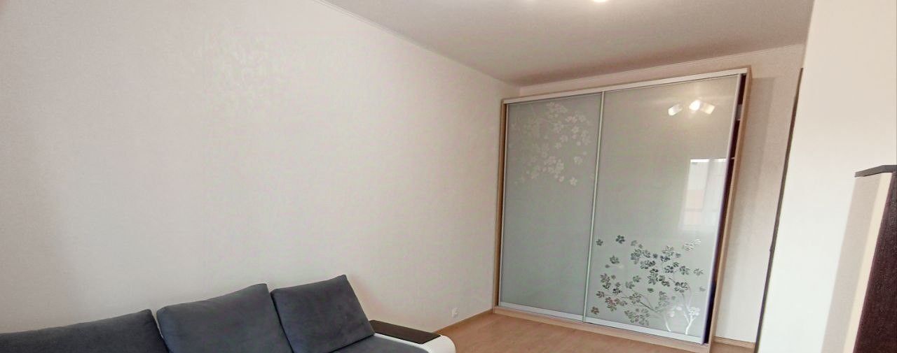 Квартира полностью меблирована и готова к проживанию. В комнатеестьс вся необходимая мебель: удобный диван, вместительный шкаф купе, тумба и при этом в комнате просторно. Кухня оборудована всем необходимым: холодильник, посудомоечная машина, микроволновка, чайник, варочная поверхность, посуда.