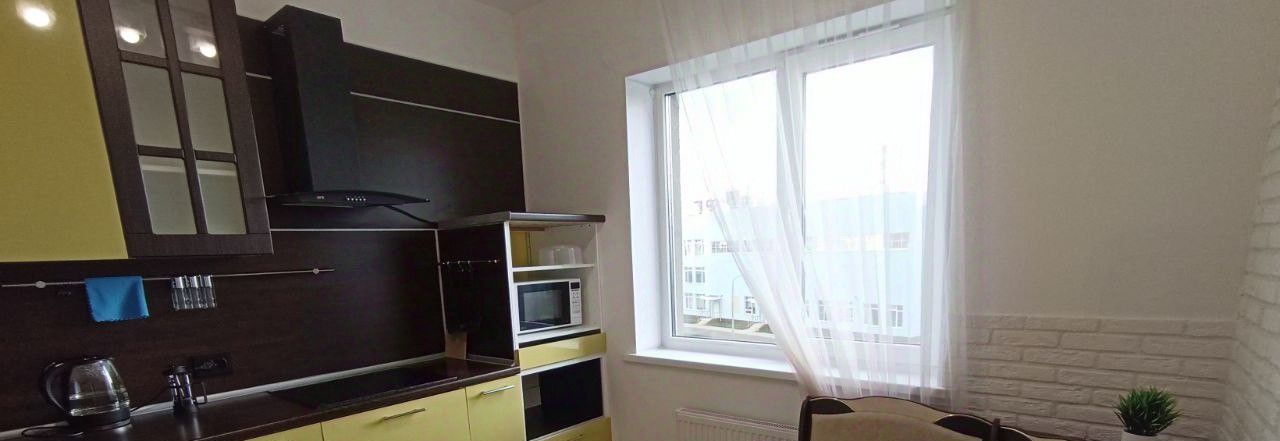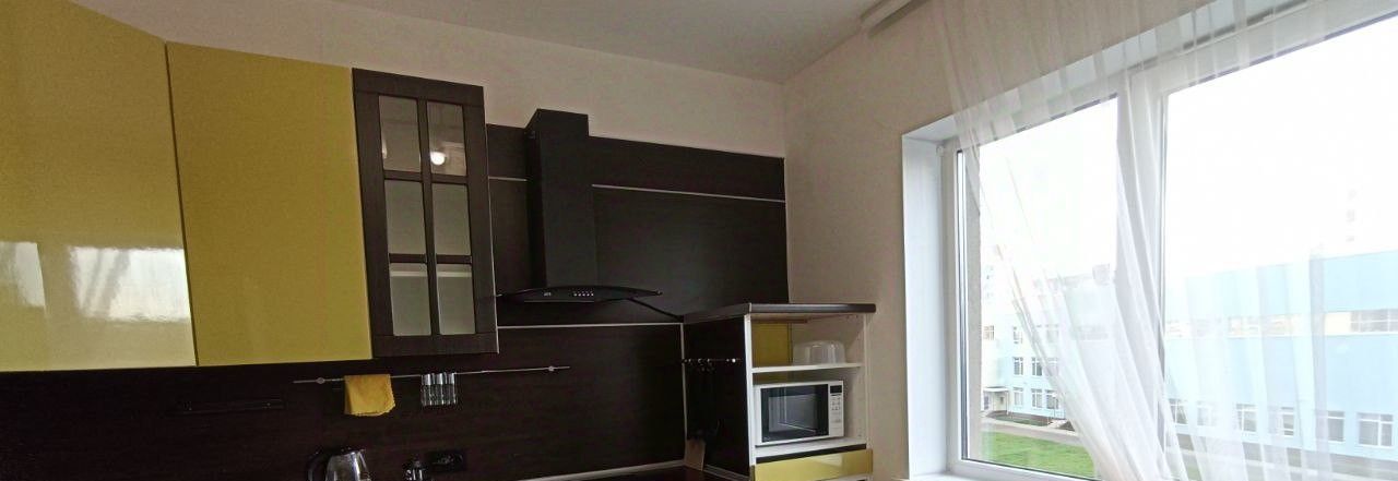 Сдаётся современная однокомнатная квартира с евроремонтом в доме 2017 года постройки. Общая площадь квартиры составляет 34 кв. м, жилая площадь — 15.8 кв. м, кухня — 9.6 кв. м. Квартира расположена на 4 этаже 24-этажного дома с высокими потолками 2.75 метра. Окна выходят во двор, поэтому в квартире всегда тихо и уютно. До метро "Комендантский проспект" всего 7 минут на автомобиле.