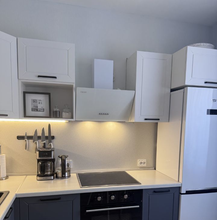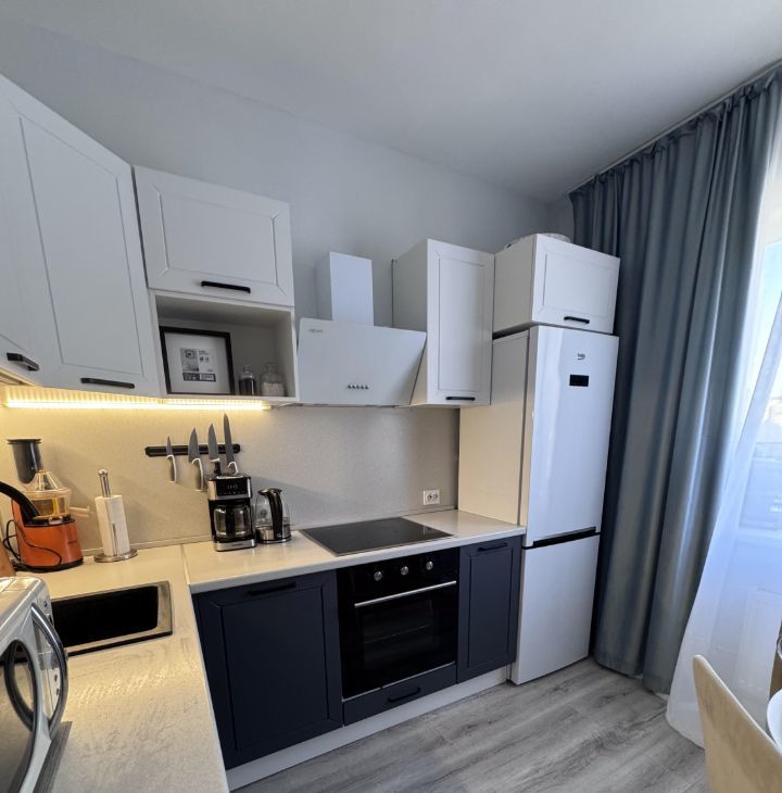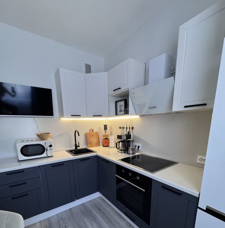 В квартире сделан качественный ремонт — все готово для комфортного проживания. Просторная кухня отлично подойдет для кулинарных экспериментов. На кухне имеется вся необходимая техника: духовой шкаф, микроволновая печь, посудомоечная машинка, индукционная плита, холодильник.