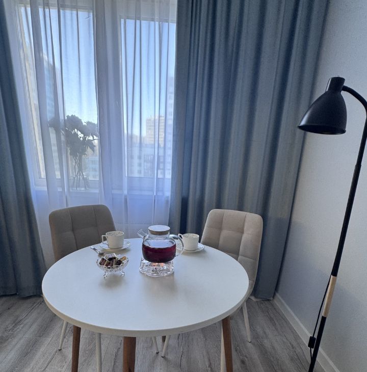 Продается уютная полностью меблированная однокомнатная квартира в современном жилом комплексе на Комендантском проспекте, 71. Общая площадь квартиры составляет 32 квадратных метра, расположена на 12 этаже 21-этажного дома с переменной этажностью, построенного в 2017 году. Высокие потолки 2.75 метра создают ощущение простора, а окна выходят на улицу, что обеспечивает хорошее естественное освещение.
