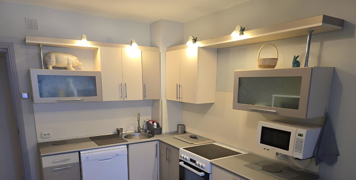 Квартира с евроремонтом, полностью меблирована. Светлая комната и кухня оборудованы всем необходимым для комфортного проживания. В наличии холодильник, посудомоечная и стиральная машины. Много мест для хранения.Санузел раздельный, в ванной комнате установлена ванна. Есть лоджия, что добавляет дополнительное пространство для вашего отдыха.