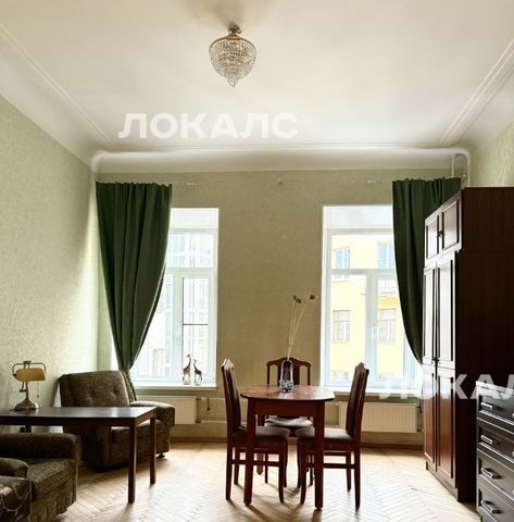 Полностью меблирована: обеденный стол с четырьмя стульями, мягкая зона (диван, кресла), шкафы.