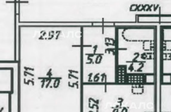 в квартире большая кухня 9 метров и отдельная комната 17 метров.