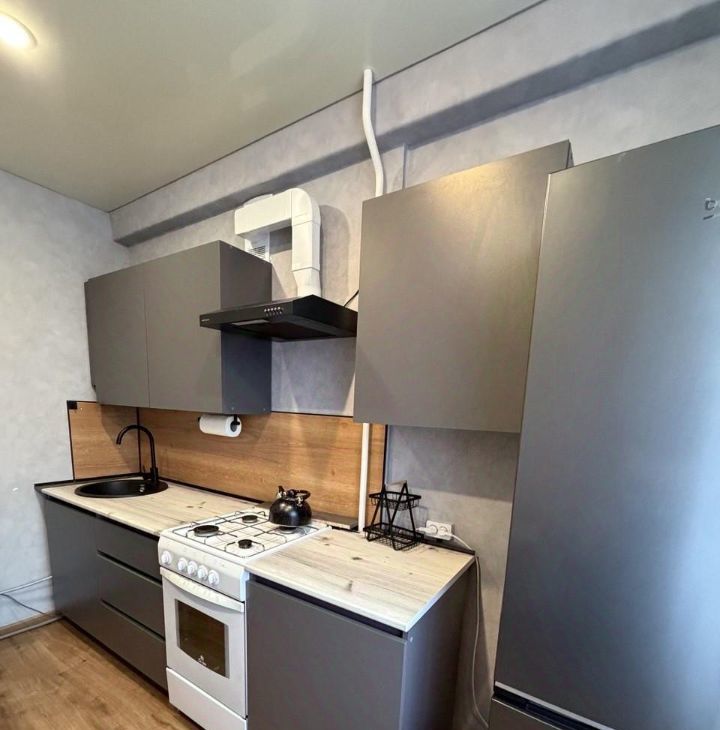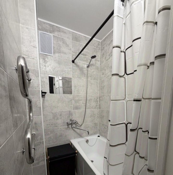 Ванная комната оборудована свежей плиткой и обновленной сантехникой. Кухня оснащена необходимой бытовой техникой: