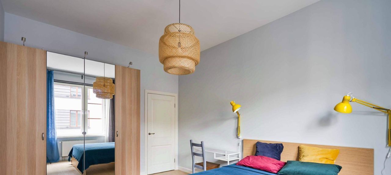 Просторная квартира в скандинавском стиле. Трехметровые потолки дают неповторимое ощущение пространства, а увеличенные окна - много света. Интерьер выдержан в спокойной цветовой гамме, но кое-где добавлены яркие цветовые акценты.