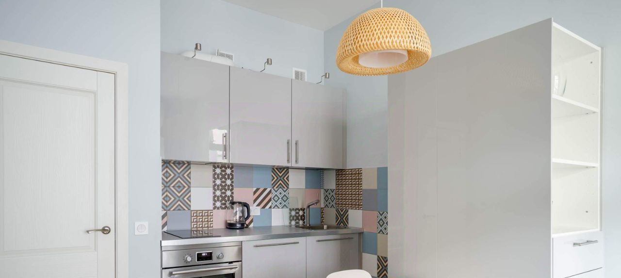 Кухня-гостиная с компактной зоной готовки, обеденным столом и огромным диваном так и ждет душевных посиделок с семьей или друзьями. Духовка с функцией гриля и посудомоечная машина будут прекрасными помощниками в организации ужина.