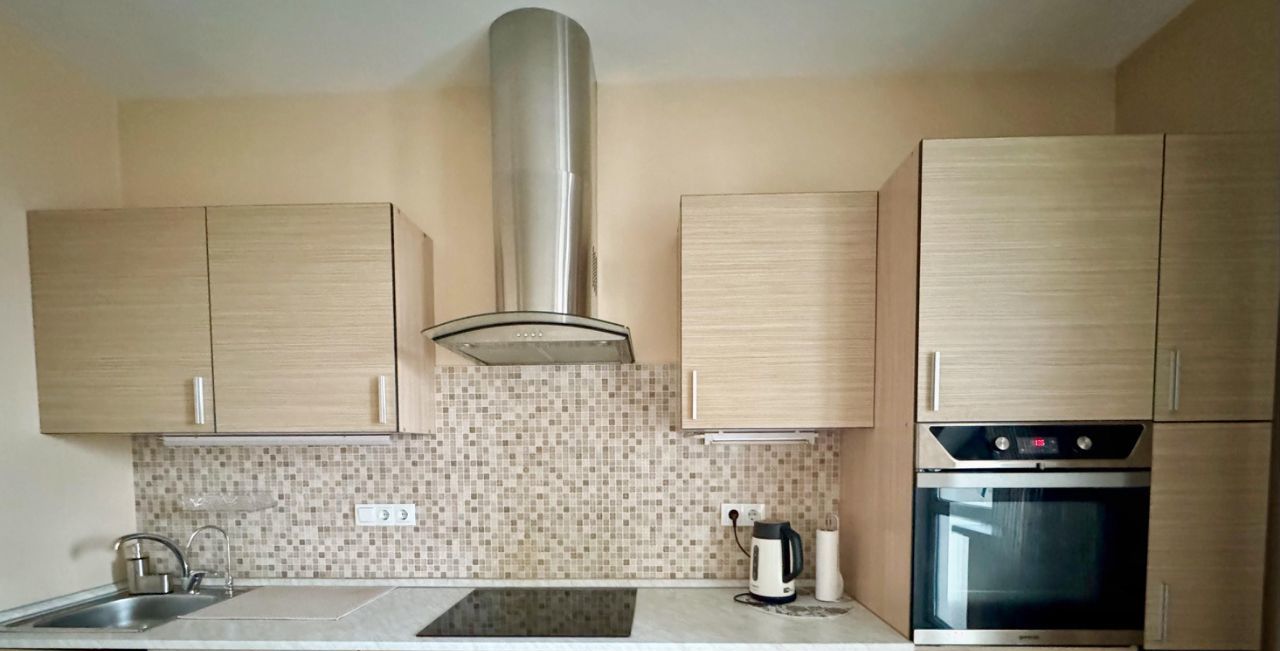 Общая площадь квартиры 46м2: спальня, просторная кухня, с/у совмещен, хоз.блок, прихожая. Лоджия. Окна выходят во двор. Есть вся необходимая бытовая техника. Кондиционер.