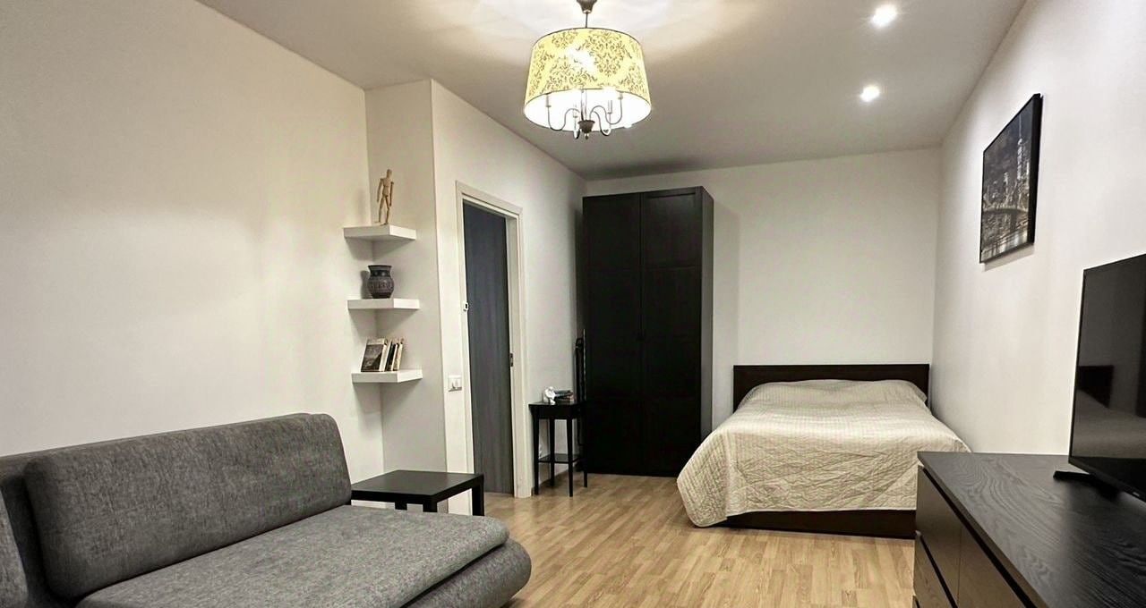 Сдается уютная однокомнатная квартира площадью 43 кв. м на третьем этаже современного 11-этажного дома, построенного в 2015 году. Просторная жилая площадь 23 кв. м и уютная кухня 10 кв. м делают эту квартиру идеальным местом для проживания. До ближайшего метро можно дойти пешком всего за 18 минут.