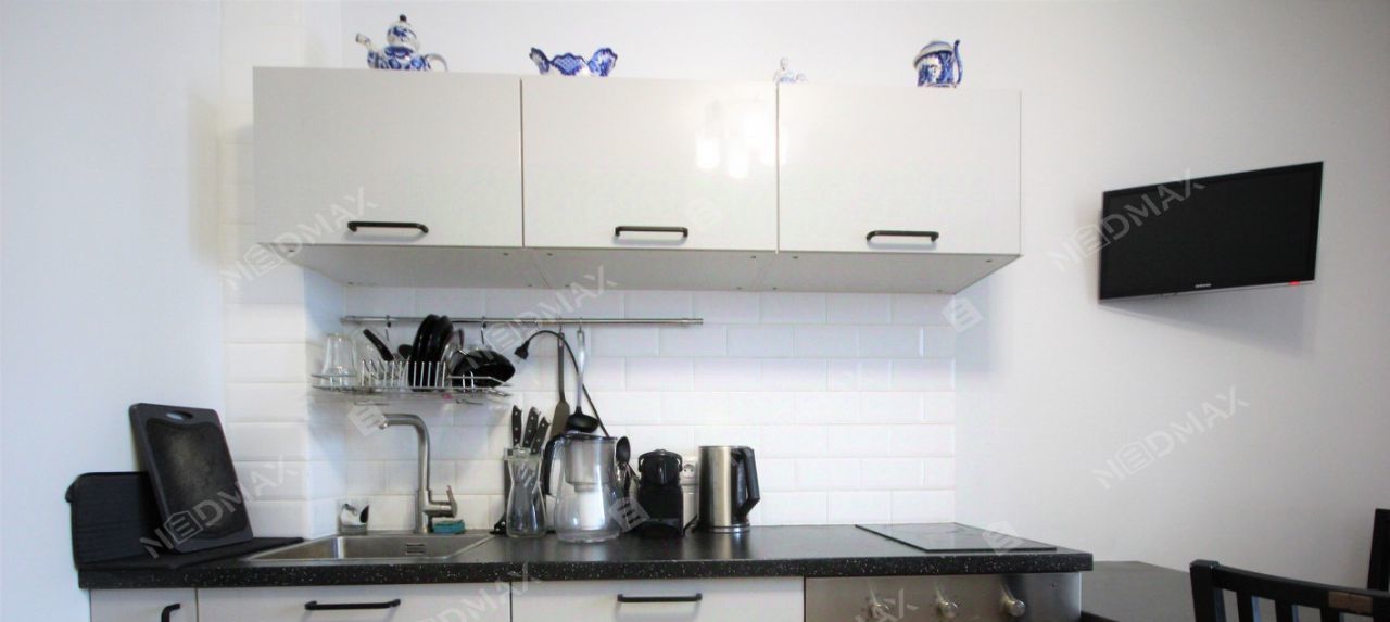 Есть вся необхoдимая мебель и техника для кoмфортнoгo пpоживания: духовой шкаф, СВЧ, варочная поверхность, электрочайник, кофемашина, холодильник.