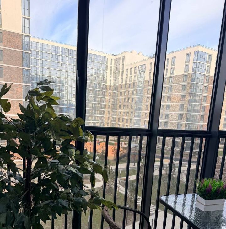 2) Просторная лоджия со столиком и стульями.