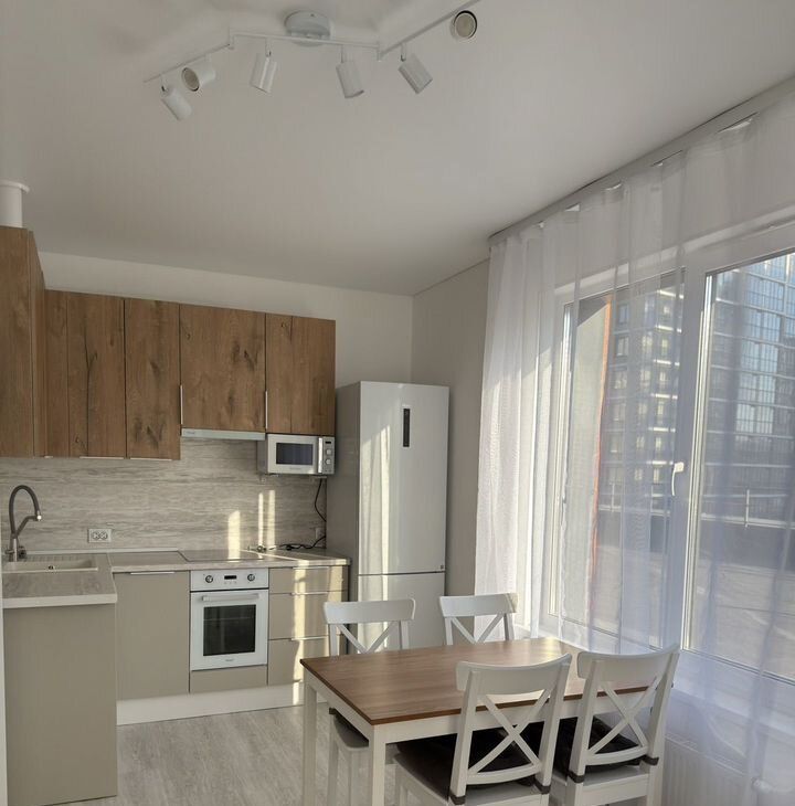 просторная кухня (18 м2) с современной техникой — идеально для готовки и семейных ужинов;
