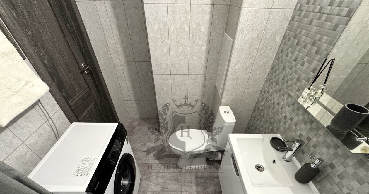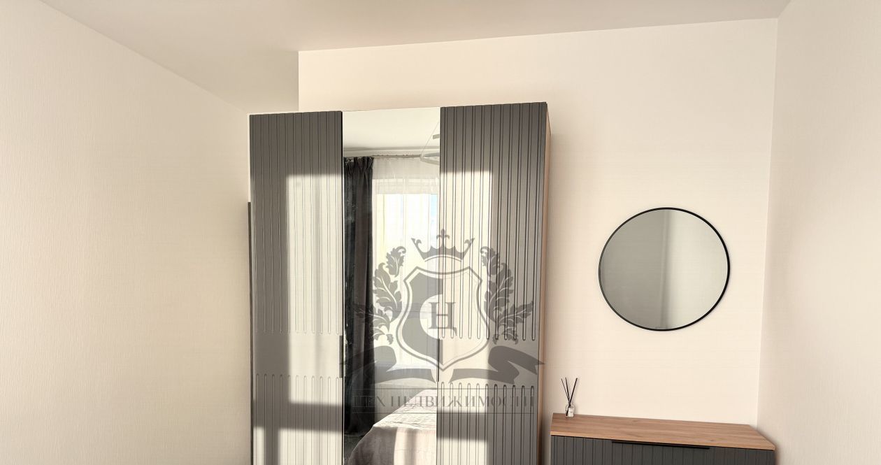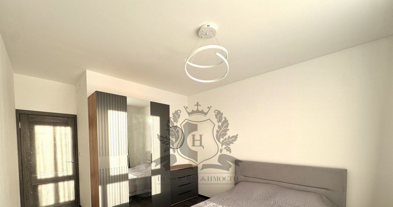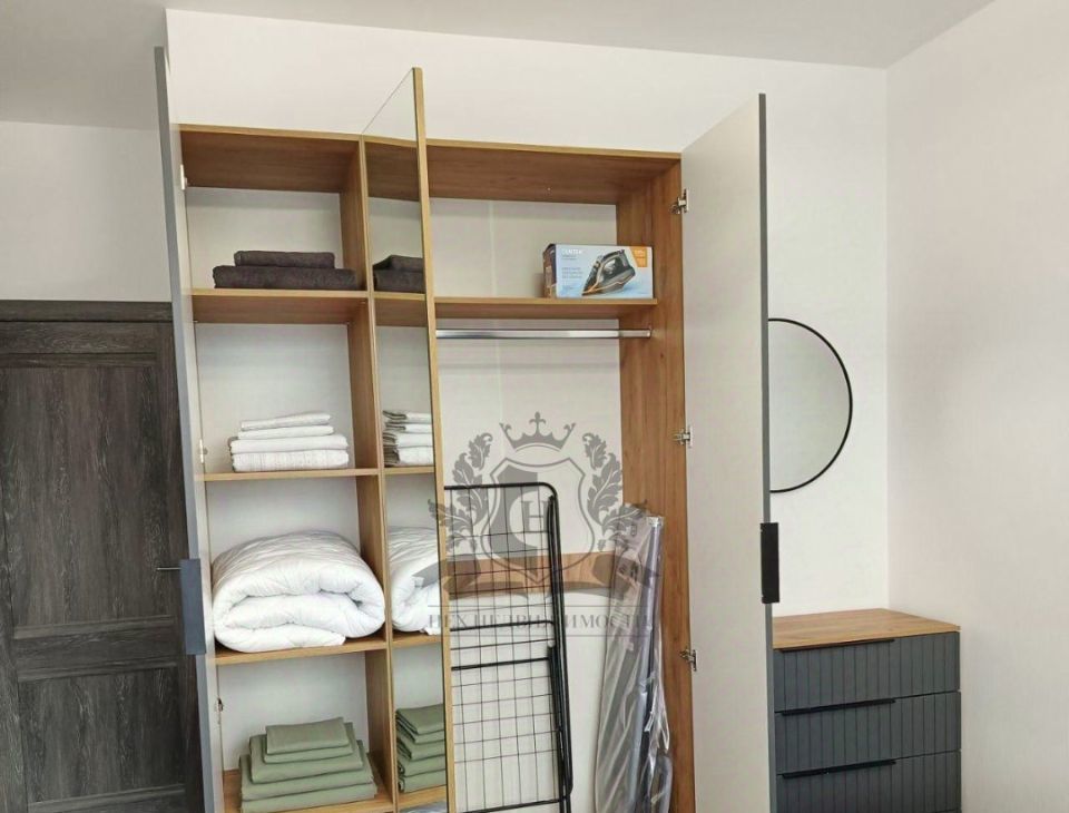 Оснащена всем необходимым для комфортного проживания: холодильник, стол, стулья, микроволновая печь, чайник, кухонные принадлежности, варочная панель, духовой шкаф, вытяжка, стиральная машина, двуспальная кровать-диван, хороший матрас, диван, шкаф купе, телевизор, гладильная доска, сушилка для белья, утюг, одеяло, две подушки. Вся мебель новая. Окна квартиры выходят во двор. Квартира очень светлая и уютная. Сдается впервые