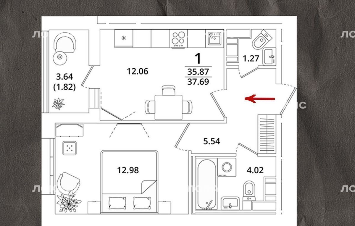 1-к кв. Санкт-Петербург Кубинская ул., 82к3с1 (36.3 м²)