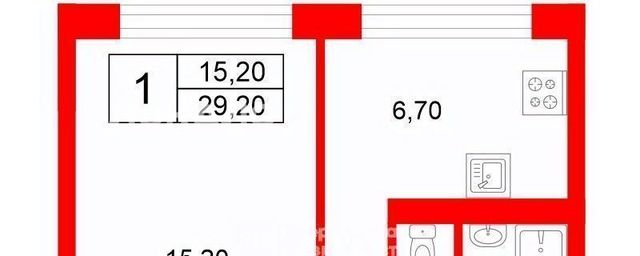 1-комнатная квартира: Санкт-Петербург, Купчинская улица, 13к3 (29.2 м²)