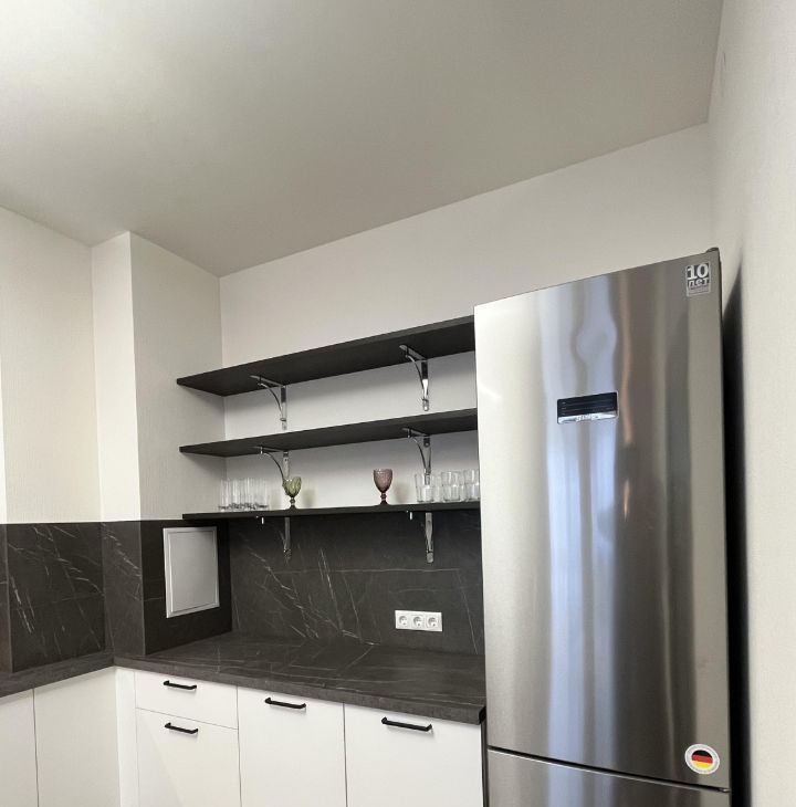 В квартире выполнен евроремонт, поэтому вам не придется беспокоиться о дополнительных вложениях. Обстановка включает удобную мебель как на кухне, так и в комнате. Вся необходимая техника в наличии: холодильник, посудомоечная машина, телевизор и стиральная машина. Санузел совмещенный, с ванной. Из окон открывается вид во двор, что добавляет тишины и уюта. На балконе можно расслабиться после рабочего дня.