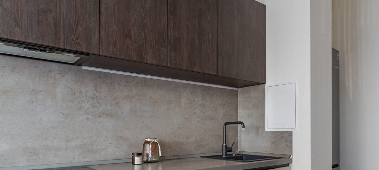 - новая техника: варочная поверхность, посудомоечная машину, духовой шкаф, холодильник, вытяжка, электрический чайник, микроволновая печь (внутри кухонного гарнитура)