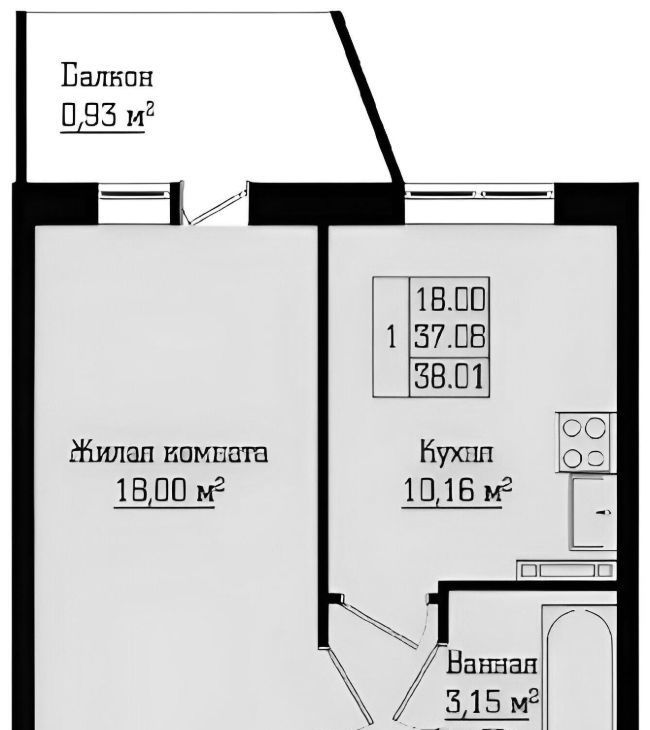 1-к кв. Санкт-Петербург Лабораторный просп., 23 (40.0 м²)