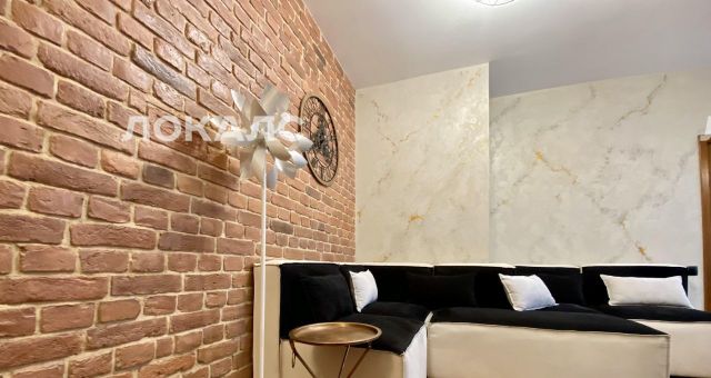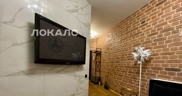В отделке использованы качественные материалы (венецианская штукатурка, декоративный кирпич, керамогранит, пол из натурального дерева) и встроенная мебель на заказ. Кухня оборудована микроволновкой, чайником, электрической плитой, духовкой, холодильником с морозильной камерой, набором посуды.