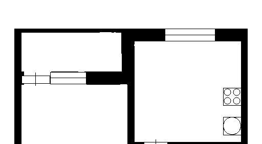 Кухня: Встроенная мебель, электрическая плита с духовкой, микроволновая печь, небольшой холодильник, стиральная машина.